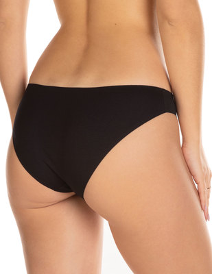 Klasyczne mini figi damskie z kolekcji LASER CUT w kolorze czarnym, gładkie. Uszyte z bawełny jersey. Talia i brzegi nogawek są wycinane laserowo i klejone dla większego komfortu. Laserowo wykończenie - dzięki czemu bielizna jest niewidoczna nawet pod dopasowanymi ubraniami. Doskonałe uzupełnienie twojej garderoby.